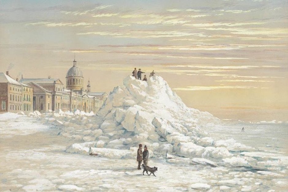 Груда льда перед зданием рынка. Монреаль, Квебек. Джеймс Дункан, около 1854 года. Иллюстрация из книги Бернда Бруннера «Жажда зимы»