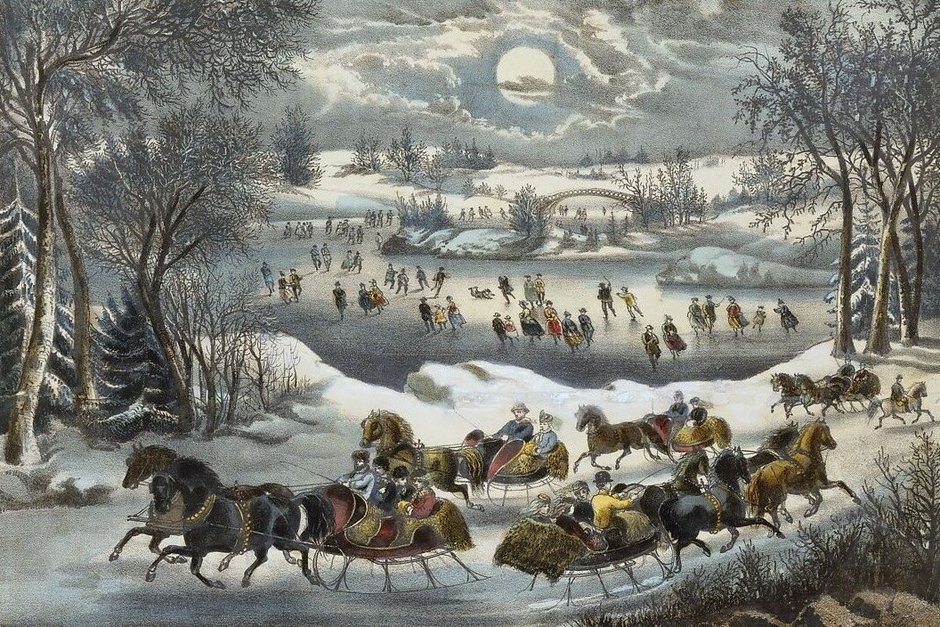 Усыпанные снегом городские парки — места волшебства. Центральный парк зимой, 1877—1894 годы. Иллюстрация из книги Бернда Бруннера «Жажда зимы»