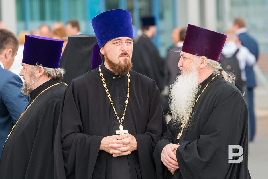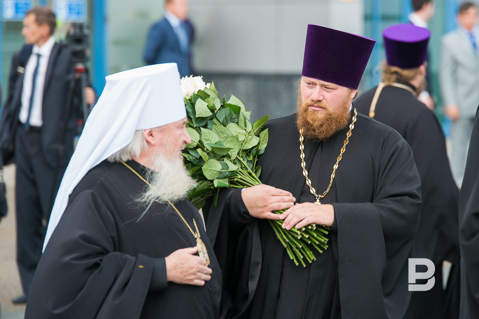 За полтора часа до прилета Патриарха в ВИП-зале аэропорта собралась внушительная делегация священнослужителей, среди которых были замечены особо авторитетные — наместник Раифского Богородицкого монастыря архимандрит Всеволод, его коллега из Кизической обители игумен Пимен, настоятель Никольского собора протоиерей Иоанн, секретарь епархии протоиерей Владимир и другие. Епископат РПЦ был представлен епископом Альметьевским и Бугульминским Мефодием и епископом Чистопольским и Нижнекамским Парменом. Естественно, что возглавлял делегацию встречающих митрополит Казанский и Татарстанский Феофан.