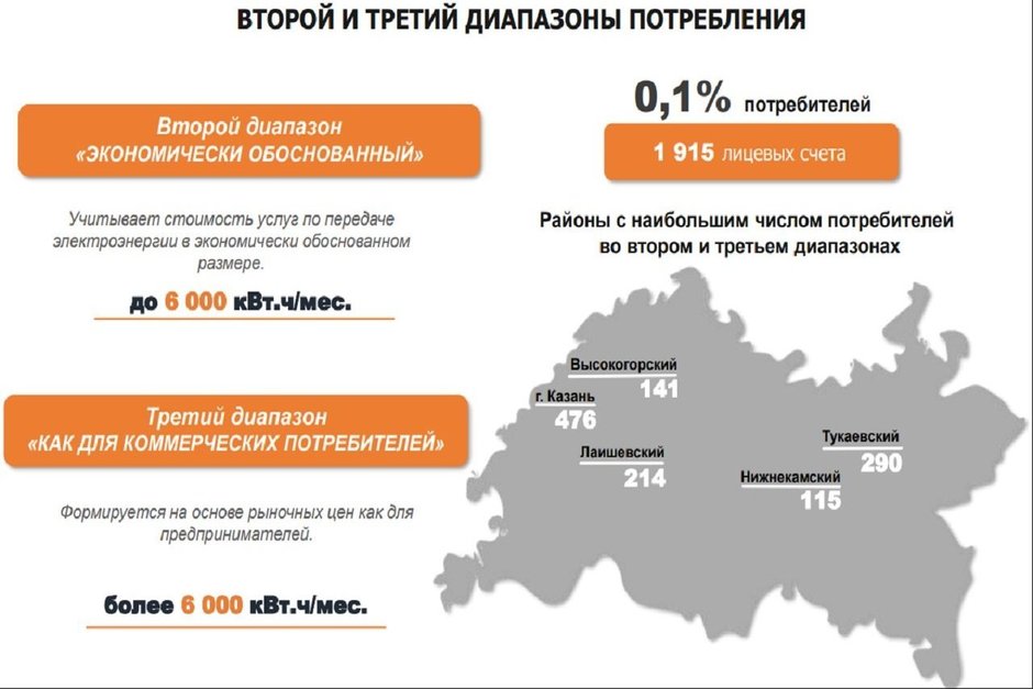 По словам главы «Татэнергосбыта», в республике было проведено комплексное исследование энергопотребления жителями Татарстана, и оно показало, что месячный расход электроэнергии у 99,9% граждан не превышает 3900 кВт·ч, поэтому «абсолютное большинство жителей республики дифференциация тарифов не затронет».