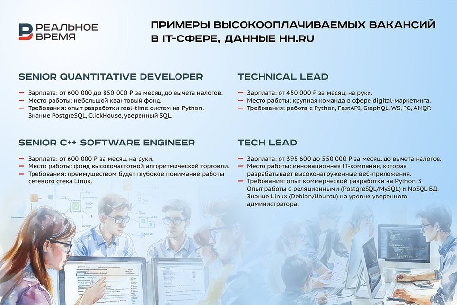 По данным hh.ru на 2025 год, в Татарстане на одну открытую вакансию в IT претендуют 32 начинающих специалиста, в то время как сеньоров только три на одно рабочее место