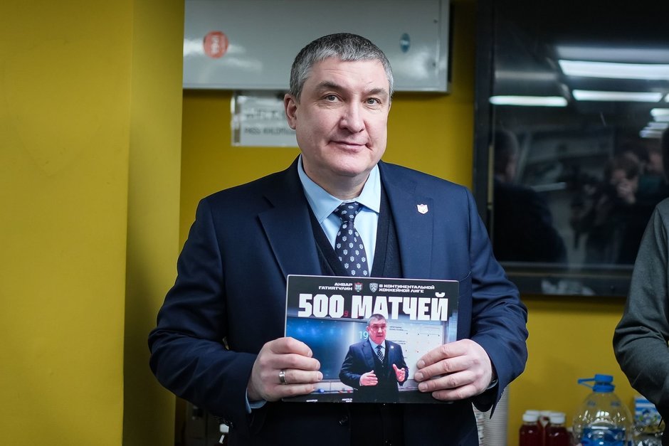 Второй матч с «Адмиралом» стал для Анвара Гатиятулина юбилейным, 500-м в Континентальной хоккейной лиге (КХЛ) в качестве тренера. Это 11-й специалист, достигший такой отметки в истории турнира. Сам тренер отреагировал на свое достижение сдержанно: «Это серьезная цифра, но есть к чему стремиться».