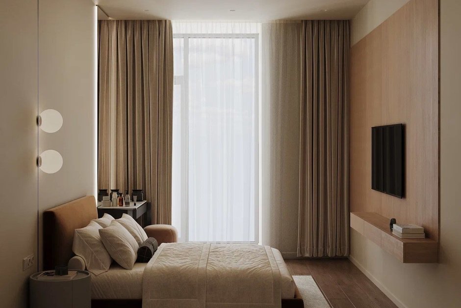 В квартирах — панорамные окна в пол, изготовленные из алюминиевого профиля компании Alutech. Это сочетание огромного количества естественного света в доме и высокого уровня звукоизоляции. В дополнение к этому для большей приватности под стяжкой пола проложен шумоизолирующий слой.