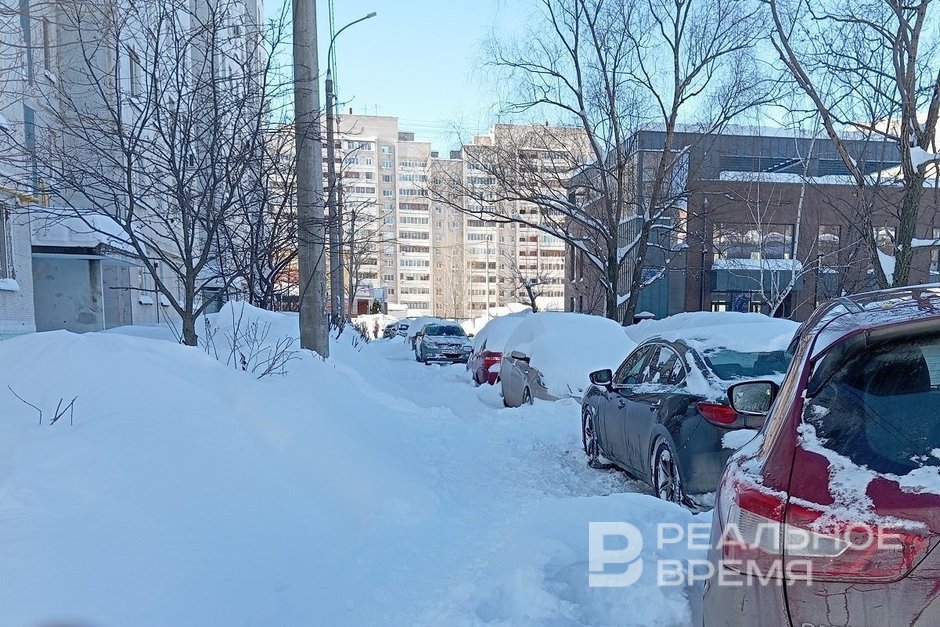 В непосредственной близости от здания УК «Уютный дом» на ул. Четаева, сразу за шлагбаумом, жители пробирались к своим подъездам по протоптанным в сугробах узким тропинкам. Инна Серова / realnoevremya.ru