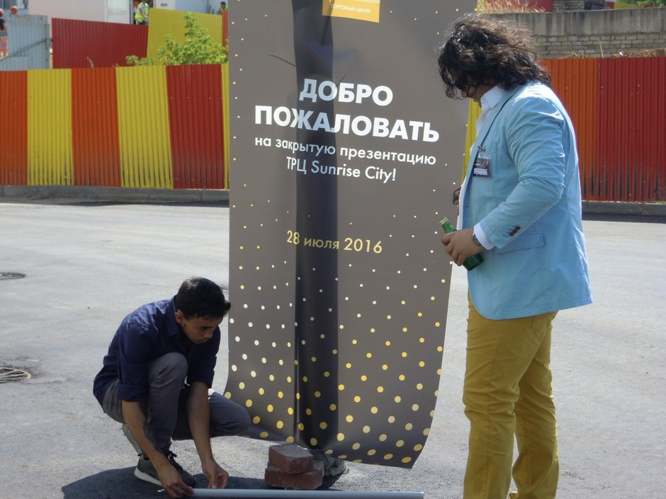 Он также сообщил, что ТЦ откроется в октябре уже заполненным на 80%, большие «якоря» точно успеют открыться в срок. Оставшимися 20% площадями CBRE даст «шанс местным сетям проявить себя». Большинство арендаторов уже выходят на отделку, отметил он, «чтобы в октябре открыться большим скопом». Таким же «большим скопом» после официального открытия потенциальные арендаторы и возможные покупатели квартир потянулись в сам пока еще строящийся торговый комплекс. Заходили с первого этажа, прошли любопытной толпой по будущему моллу H&M (на 2000 кв. м.). Потолков пока нет, сверху виселицами свисают провода, эскалатор смонтирован, но пока мертв. На отдельных бутиках висят бумажки с надписями: «В местах, которые уже застолбили основные якорные арендаторы, идет отделка».