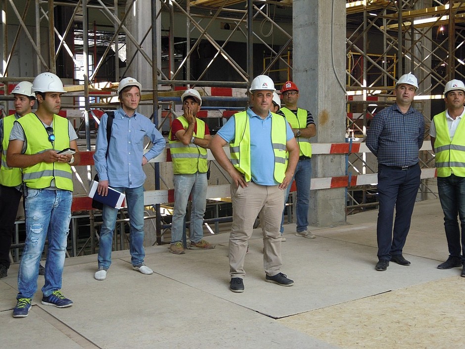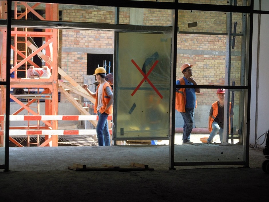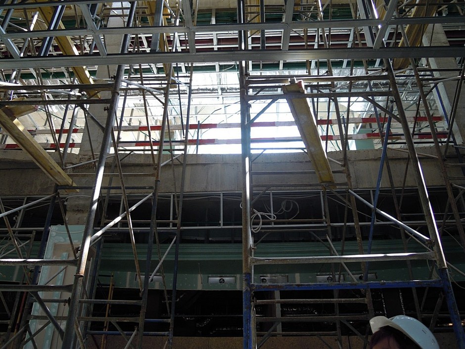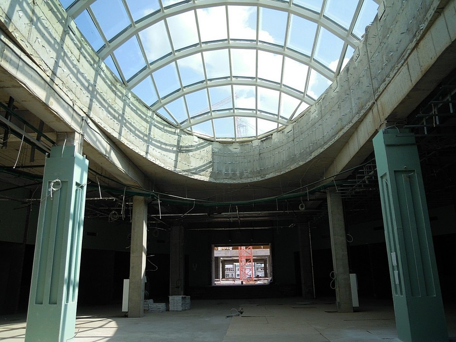 Так, «зашел» на объект уже и турецкий магазин LC Waikiki (за витринами пока пустота). По коридорам шныряют турецкие рабочие (всего на объекте работает 750 человек!). Посмотрели выход на кинотеатр, которого еще нет (но оператор уже выбран — им станет «Мадагаскар»), вместо него «на экране» с ведрами, тележками и другими рабочими инструментами туда-сюда бегали турецкие строители. В будущем предполагается поставить здесь деревья и сделать подсветку. После прохода полукружия первого этажа толпа вышла к входу со стороны пр. Вахитова (здесь место застолбил бренд Bershka). «Атриумная зона здесь идет на два этажа и завершается стеклянным фонарем с натуральным дневным светом», — попутно рассказывала гид по стройке Анастасия, — в отделке будет использоваться венецианская штукатурка золотистого цвета — все-таки мы «Санрайс-сити», хочется имитировать немножко солнышко. Потолки двухуровневые с элементами алюминиевых кассетных потолков и освещением».