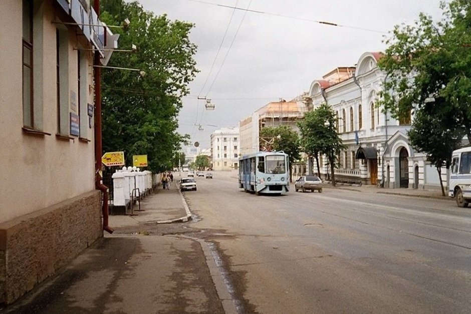 Благодаря тому, что в начале нулевых по улице Карла Маркса в Казани ходил трамвай, мы можем увидеть фотографии, которые, следуя по его маршруту, сделал популяризатор краеведения (в частности, истории трамвайного движения) Илья Евлампиев. В одной из прошлых статей мы остановились на площади Свободы. Теперь повернем направо и начнем движение вверх.