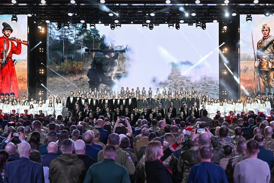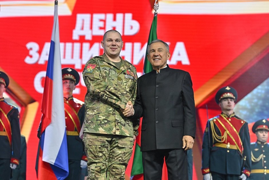 — День защитника Отечества — праздник объединяющий… И те, кто помогает тем, кто помогает, — все здесь. Защитник Отечества — не только тот, кто держит в руках оружие, — подчеркивает автор материала — военкор ТНВ Зуфар Давлетшин. В одном зале собрались и сотни бойцов как прошлых военных компаний, так и СВО, родные и близкие героев, отдавших свои жизни, служа Родине, представители молодого поколения — суворовцы, школьники, активно принимающие участие в формировании гуманитарных грузов и отправляющие бойцам письма поддержки.