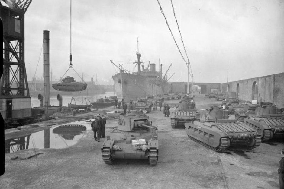Погрузка танков «Матильда» для СССР в ливерпульских доках (17 октября 1941 года). общественное достояние