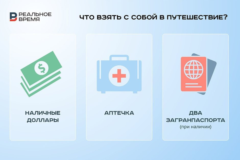 — Также берите с собой минимальную аптечку, включая антибиотики и антисептики для рук, салфетки и гель. Еще один совет: берите с собой два загранпаспорта, если у вас они имеются: они не противоречат друг другу, но по одному вы можете приезжать, уезжать, регистрироваться в отеле, а второй пусть у вас лежит где-то рядом всегда, как запасной. Это нужно для того, чтобы, если у вас попросят заграницей паспорт и по какой-то причине не захотят сразу возвращать, у вас был второй документ, по которому вы сможете обратиться в нашу консульскую службу. Плюс обязательно следует фотографии всех паспортов иметь в своем телефоне, — рекомендовал в беседе с изданием Алешкин.