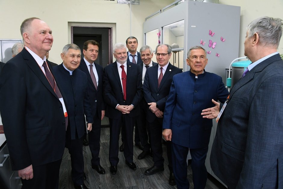 Вместе с раисом Татарстана Рустамом Миннихановым ознакомиться с работой института, послушать выступления докладчиков и поздравить юбиляра приехали мэр Казани Ильсур Метшин, президент Академии наук РТ Рифкат Минниханов и другие официальные лица.