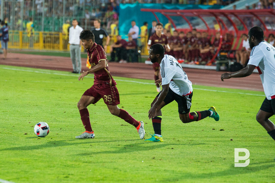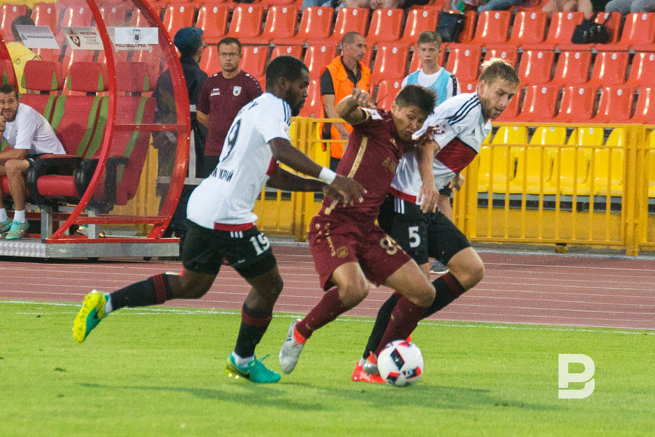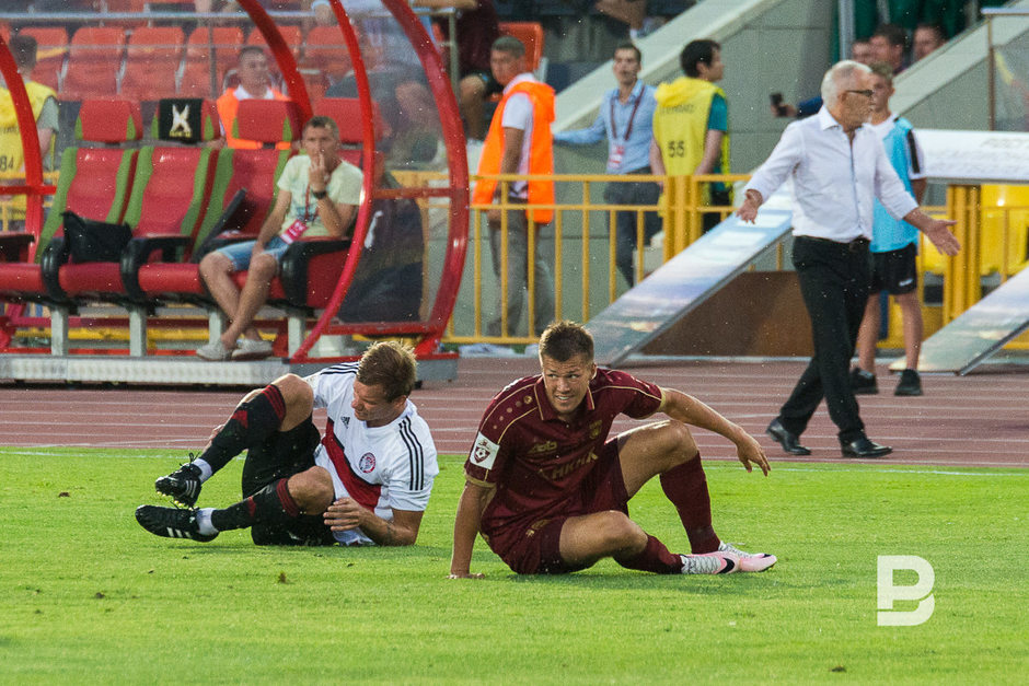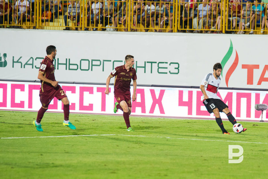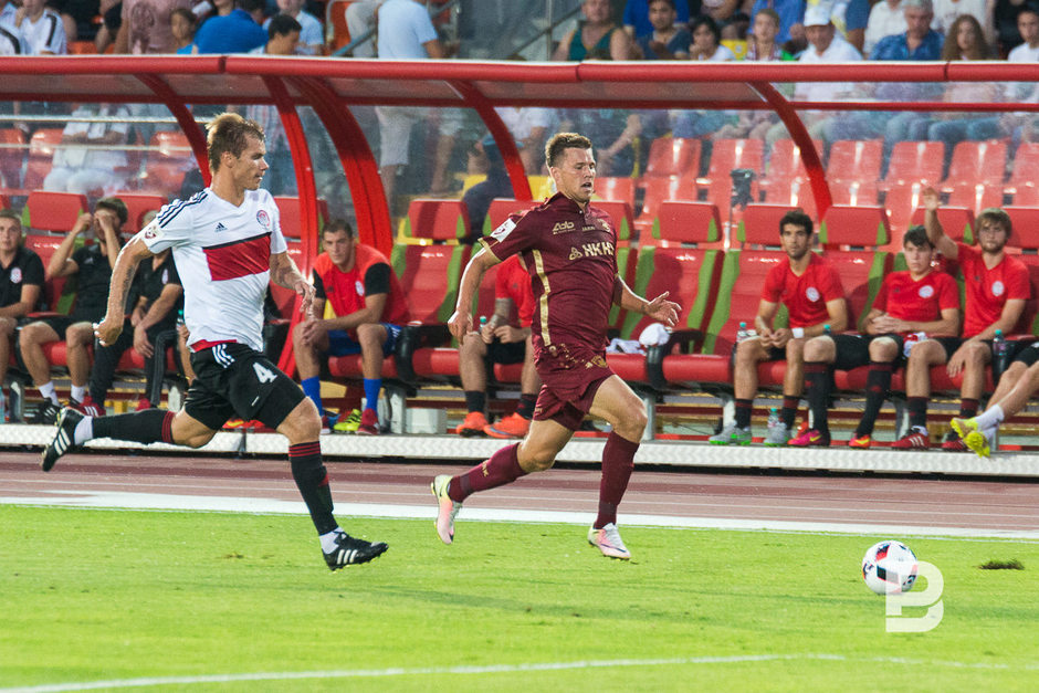 Как и в большинстве предсезонных игр, Хавьер Грасия решил сыграть в «классику» по расстановке 4-4-2, где пару форвардов составили Канунников (наконечник) и Карадениз (оттянутый форвард). Чуть ниже по центру эту парочку подпирал дуэт центральных хавбеков в составе Цакташ-Оздоев. На флангах полузащиты расположились Самуэль Гарсия (справа) и Ильзат Ахметов слева, хотя на сборах он играл справа и в центре. Линия обороны никаких вопросов в себе не таила. Устинов-Санчес-Бурлак-Набиуллин: то сочетание игроков, к которому мы привыкли в австрийских похождениях «Рубина».