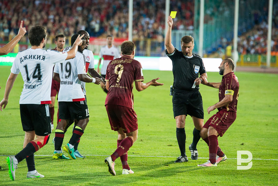 После удаления казанцы и вовсе потеряли всякий контроль над мячом, сосредоточившись на обороне. В компенсированное время первого тайма очередную желтую карточку, которую получил Набиуллин, трибуны встретили свистом. А зря, такие меры не удивили, больно уж нервным вышел первый тайм в исполнении «Рубина».