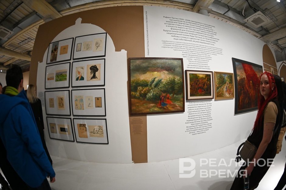 Рафаил Такташ выступает на выставке в качестве и художника (это его графические работы), и искусствоведа, под его крылом объединяются творцы, которым он посвящал свои труды: вдохновивший его Александр Волков, Урал Тансыкбаев, Надежда Кашина и другие. Первый сын поэта Хади Такташа уехал из Казани с матерью в 1930-м, в 1939-м оказался в Узбекистане, а после Суриковского и Репинского институтов уехал в Ташкент, где и жил до самой смерти. Постепенно живопись сменилась искусствоведением.
