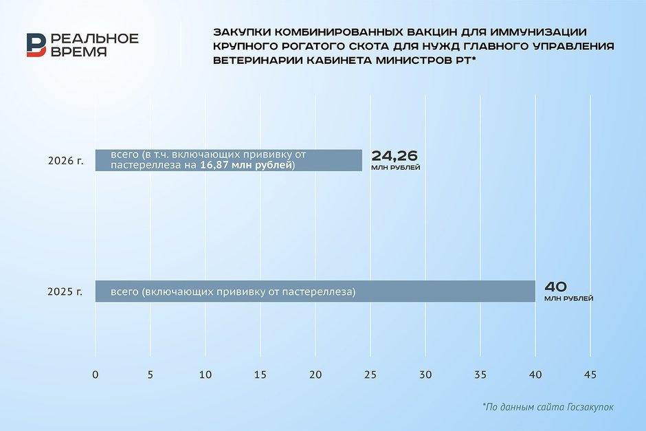 В феврале 2026 года с ООО «Ветбиохим» был заключен договор на поставку различных вакцин на общую сумму 24,26 млн рублей: