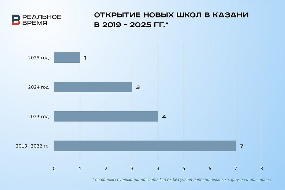 Согласно сведениям сайта kzn.ru, в 2026 году в Казани начнется строительство школы на 1 501 место в жилом комплексе «Станция Юбилейная» в Приволжском районе, но информации о том, когда она будет введена в эксплуатацию, пока нет. А в 2025 году в городе открыли всего одну новую школу.
