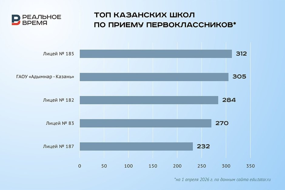 Информацию о планах приема в конкретные школы в исполкоме предоставить не смогли, объяснив это тем, что «сбор данных только начался». По данным же, которые изданию удалось обнаружить на сайте edu.tatar.ru, в общеобразовательных учреждениях Казани на 1 апреля были готовы принять 13 490 первоклассников (не считая мест в специализированных и коммерческих учебных заведениях).