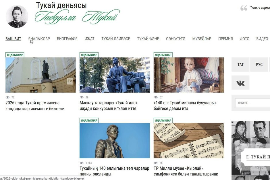 Сайт gabdullatukay.ru не менялся с 130-летия Тукая. скриншот с сайта gabdullatukay.ru
