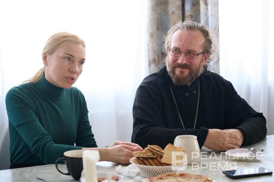 В семье Сафоновых четверо детей. Старшей дочке 22 года, средним дочери и сыну 16 и 14 лет, младшей 11. Как дети приняли внезапное изменение отцовского статуса? Родители рассказывают: все прошло спокойно и как бы само собой. Вот папа был сотрудник ГАИ, гладко выбритый и с короткой стрижкой, вот он был предприниматель, а теперь он православный батюшка. В школе у них это тоже восприняли спокойно. И одноклассники-мусульмане, и дети из христианских семей могут подойти и спросить, как в православной традиции принято делать то или иное. Верующая семья в наше время не редкость в обеих главных конфессиях республики, так что дети не чувствуют ни давления, ни стеснения.