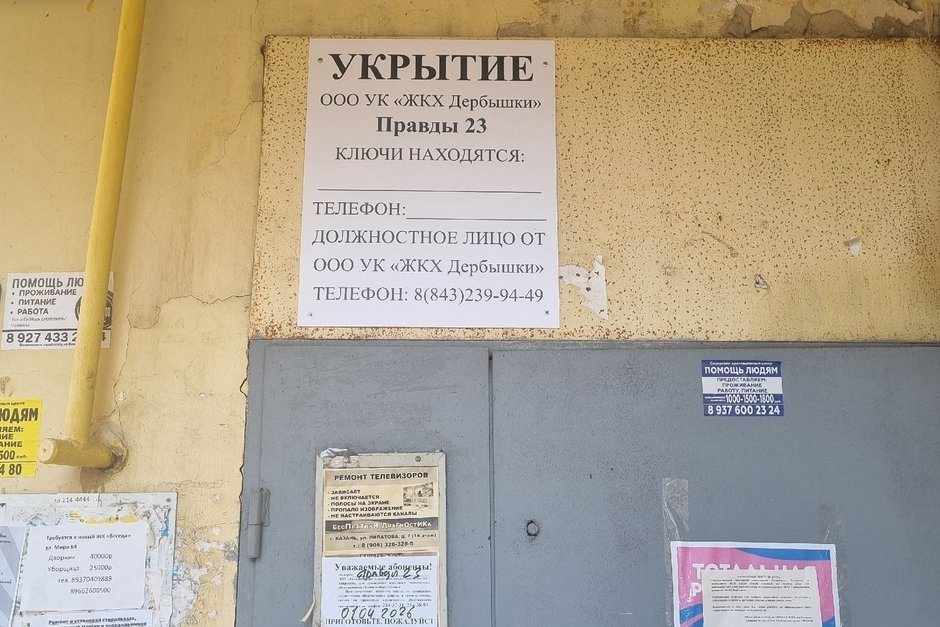 На официальном сайте исполкома Казани вывешены адреса подвальных помещений многоквартирных домов, приспособленных для укрытия населения. Однако в этом списке нет домов, в которых в случае воздушной тревоги рекомендуют укрываться управляющие компании — например, нет домов 52/72 на ул. Татарстан — Нариманова, №23 на ул. Правды, №28 на ул. Солидарности. А таблички с текстом про укрытие есть.