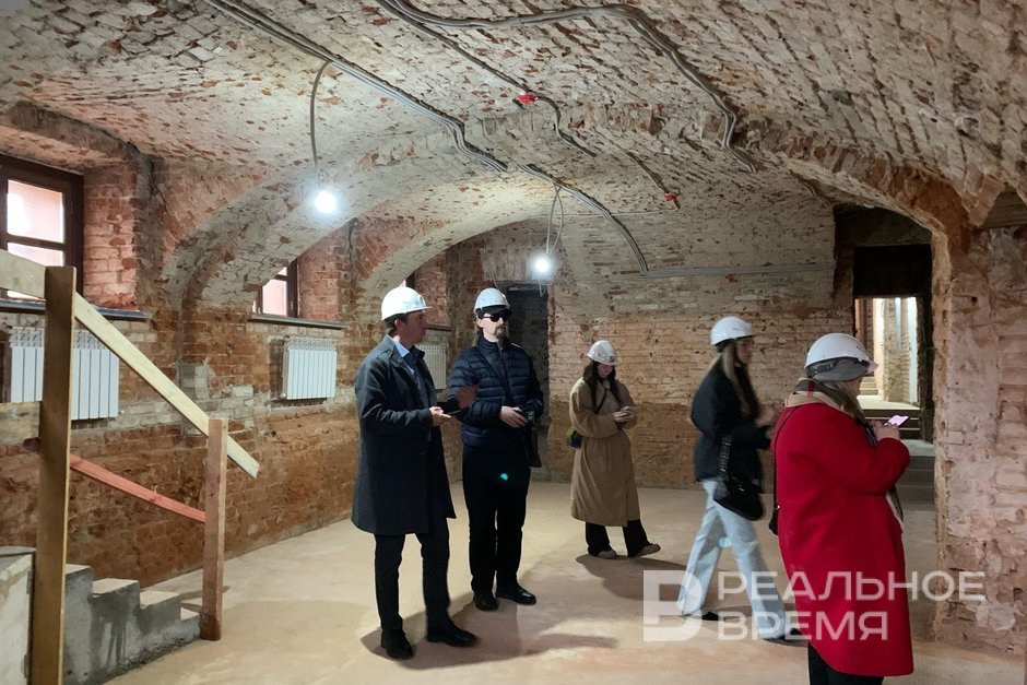 Работы заняли не один год: в 2013-м объект был в аварийном состоянии. Первый этап — реставрация фасадной части, восстановление кровли, окон — провели к Универсиаде. В 2017 году здесь были обнаружены карстовые пустоты. «Была проведена инъекция фундаментов, загнано неимоверное количество материала. После этого здание отстоялось, и работы были продолжены», — рассказал эксперт.