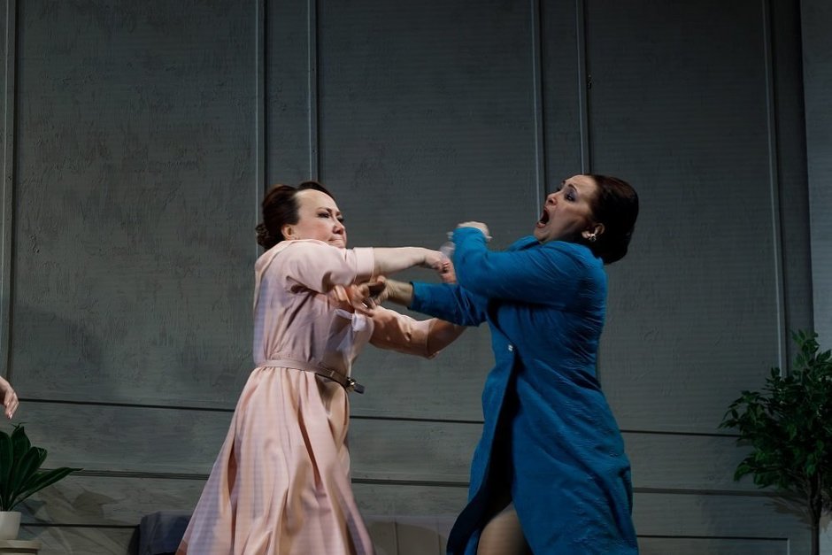Другая тема спектакля — это умение разговаривать друг с другом. Актеры на сцене хорошо существуют и в режиме дружеских подколок, и открытого противостояния, а ближе к финалу чуть не разносят декорации. Можно сказать, что Заббаров, как и было в начале сезона с мюзиклом «Вслед за мечтой» («Хыял артыннан», 6+), взял лучшее, что есть у тинчуринцев, а именно: активно существовать на сцене. Он поместил героев в неоднозначную ситуацию, в которой каждый зритель сам находит для себя ответы, порой очень неприятные.