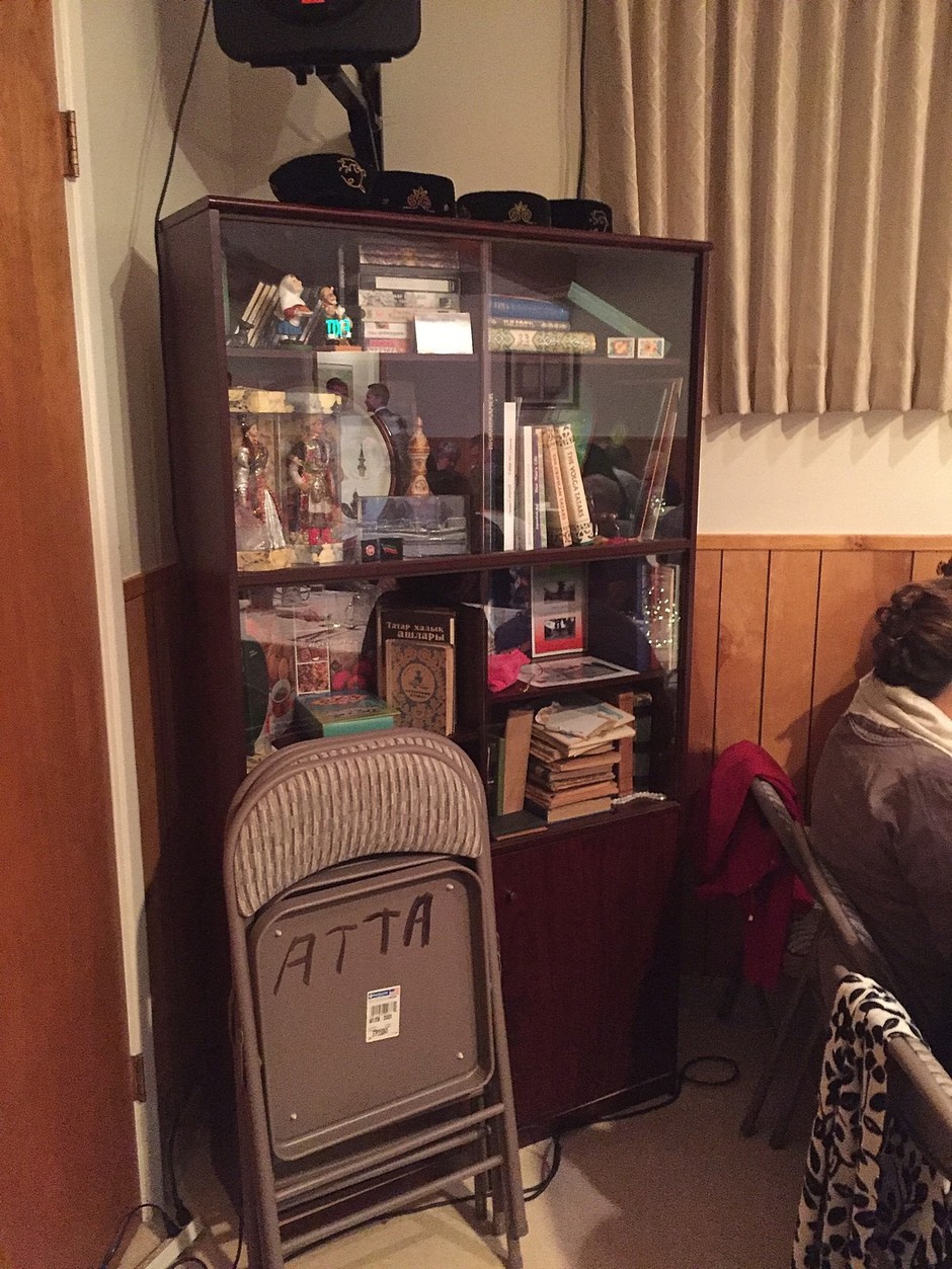 В двух оставшихся углах можно было видеть два флага: конечно же, татарский двухцветный флаг с белой полосой в одном углу и, традиционный для любой организации в США, американский флаг в другом углу. Этот второй, американский флаг, напомнил мне, что многие из членов ассоциации были рождены уже далеко за пределами своей исторической родины: кто-то в Китае, а многие и непосредственно в США, поэтому они осознают себя не только носителями татарской, но и американской культуры.