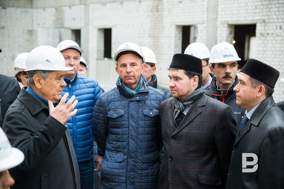 — Важно то, что мы заявляем о своем желании, чтобы увековечили Казань. И мне нравится, что сегодня здесь наши славные строители собрались вместе с молодежью на фоне такого объекта, — поприветствовал Минтимер Шаймиев присутствующих, после чего поблагодарил строителей за работу. — Трудно даже поверить — капсула исламской академии была заложена в мае месяце, а уже сегодня начинаются наружные отделочные работы. Вот так мы умеем работать. Так держать!