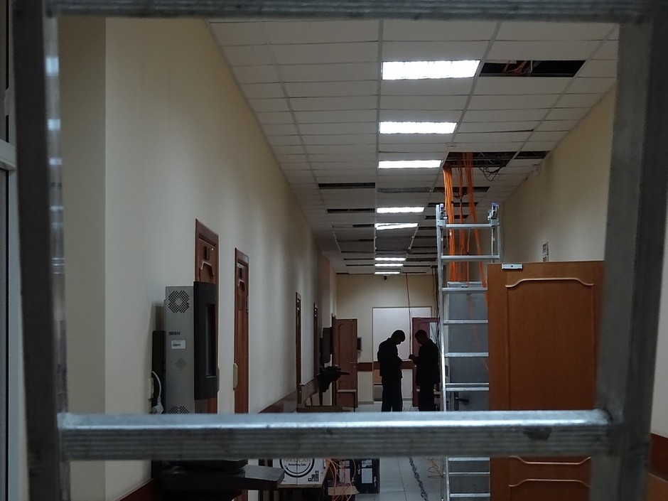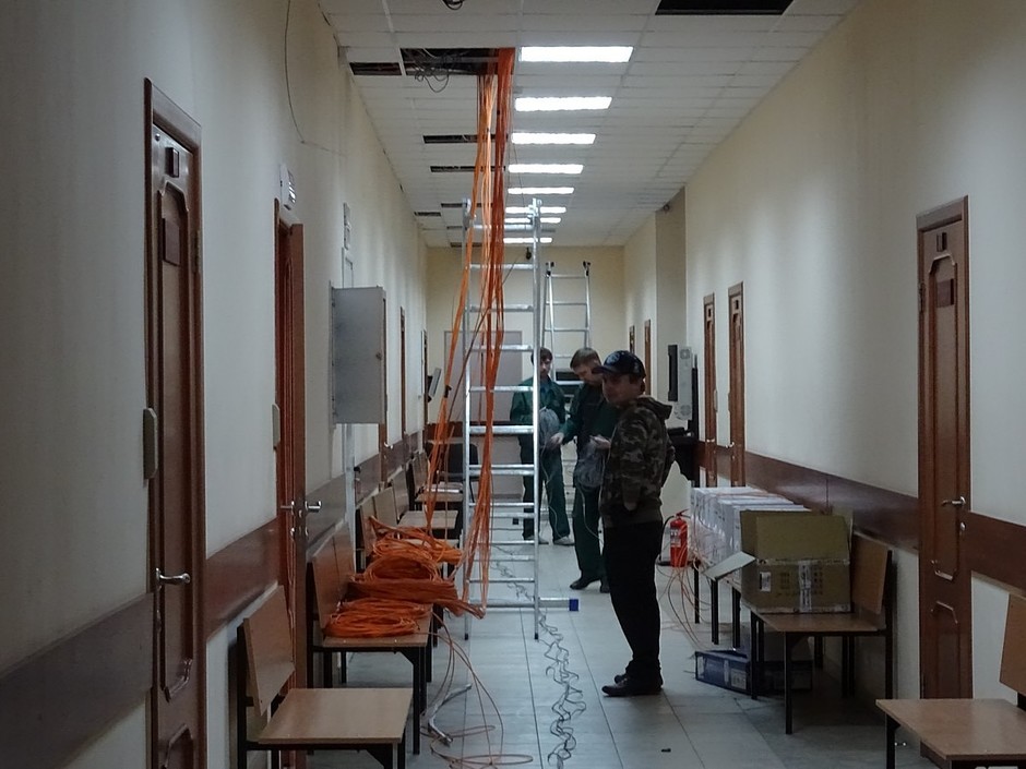 Пока на первом этаже шел суд, на втором — рабочие активно укладывали электрические кабели, в том числе для телефонной связи. По прежним номерам, размещенным на официальном сайте суда, уже не дозвониться, а новые пока не заработали. В качестве временного решения этой проблемы на сайте суда планируют вскоре опубликовать горячие номера мобильных телефонов. Впрочем, прием граждан уже идет, он приостанавливался лишь с 31 октября по 2 ноября, на время переезда.