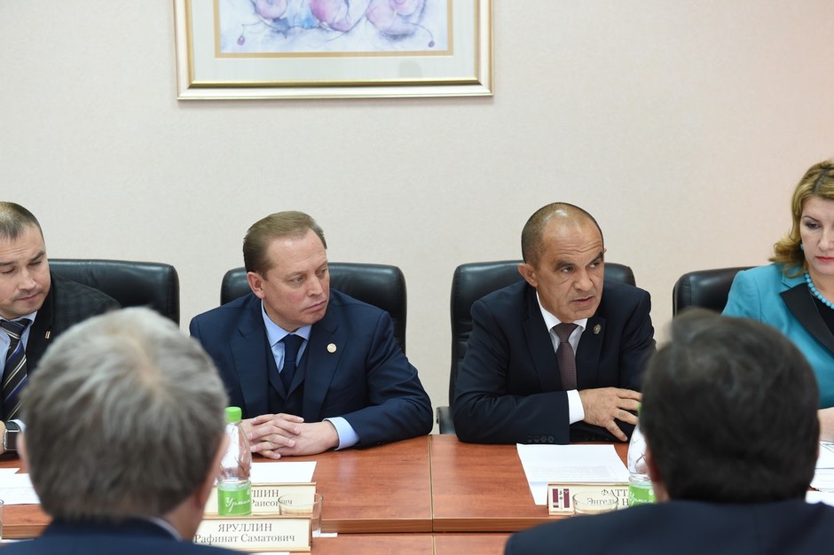 На совещание в Нижнекамск приехали министр образования Энгель Фаттахов, помощник президента РТ Ринат Сабиров, глава «Татнефтехиминвест-холдинга» Рафинат Яруллин, мэр города Айдар Метшин, главы промышленных предприятий Нижнекамска — Азат Бикмурзин («Нижнекамскнефтехим») и Леонид Алехин («ТАНЕКО»), представители руководства «ТАИФ-НК» и «Нижнекамскшины», КНИТУ, Минпромторга РТ.