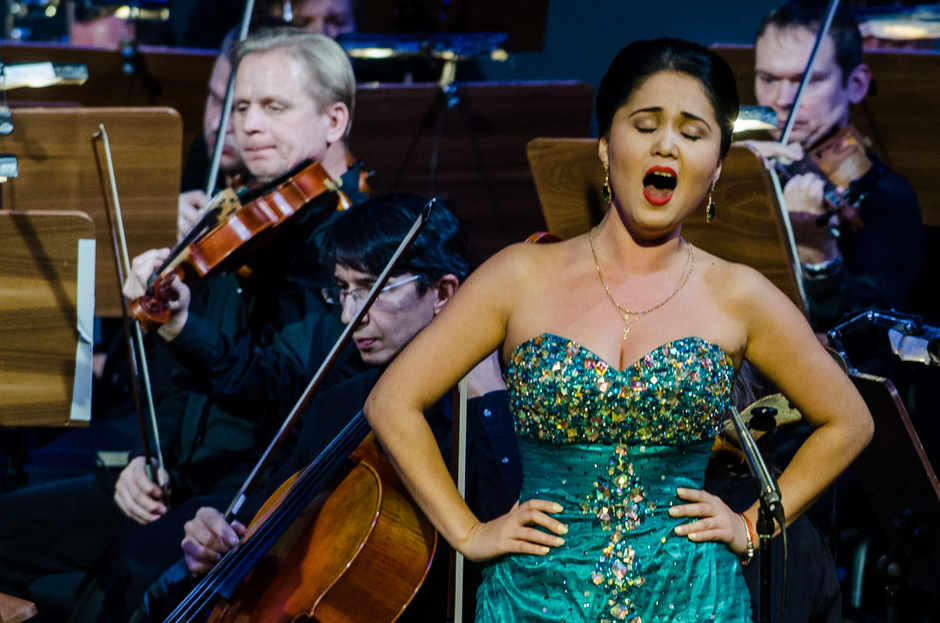 Главным героем вечера был молодой певец Филюс Кагиров. Солист, которого чаще всего воспринимают как эстрадного исполнителя, год назад решил попробовать себя и в оперном жанре. Идея была поддержана казанской оперой, в результате программа состояла из оперных арий, татарской вокальной классики и неаполитанских песен.