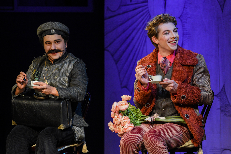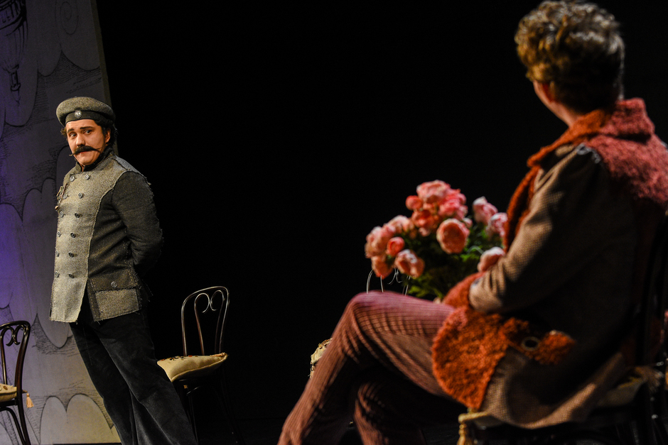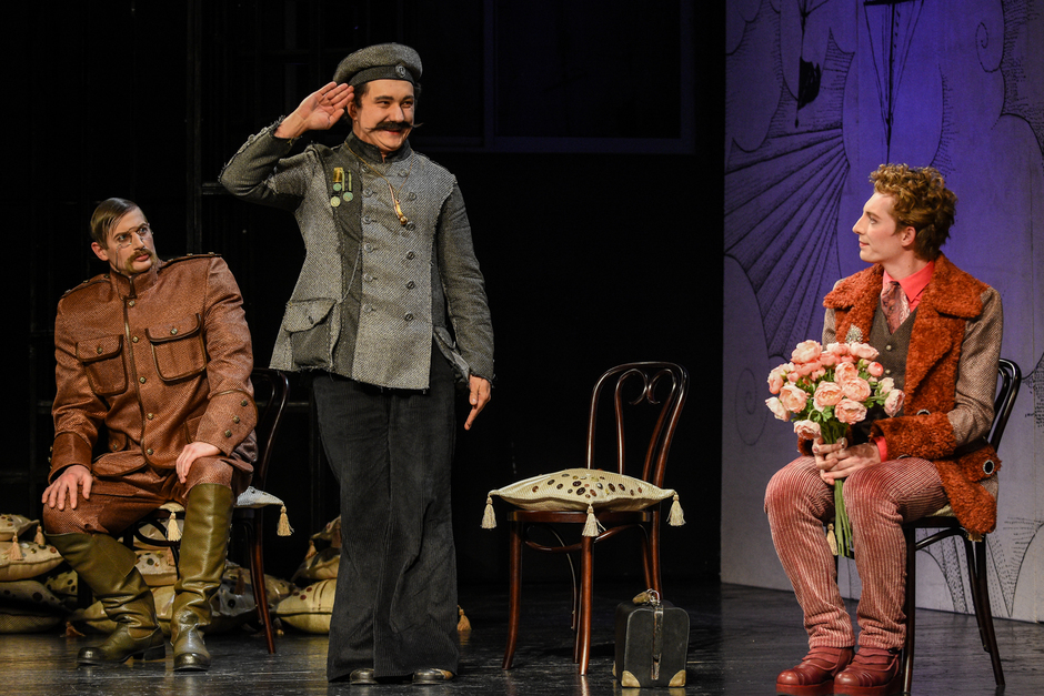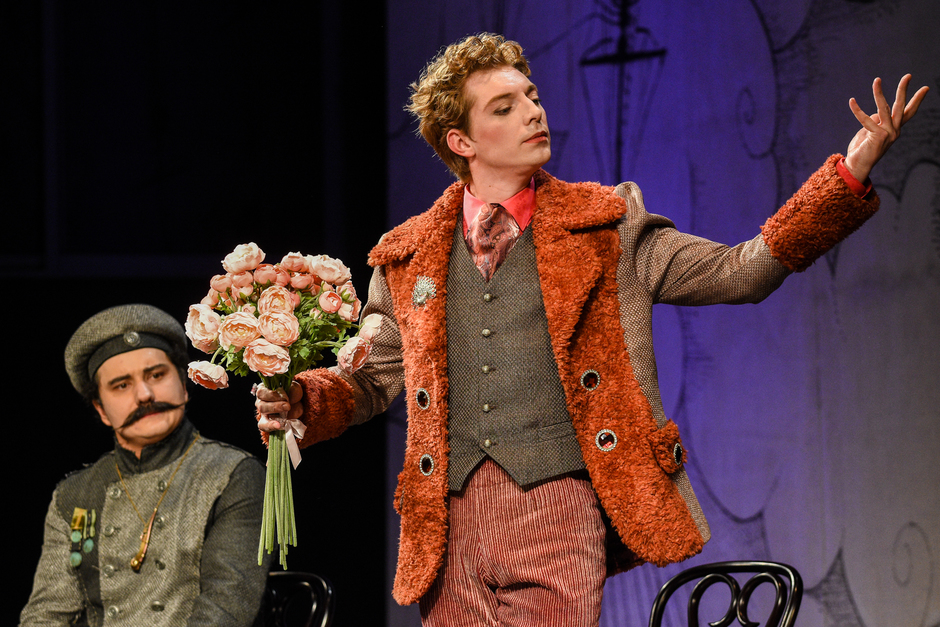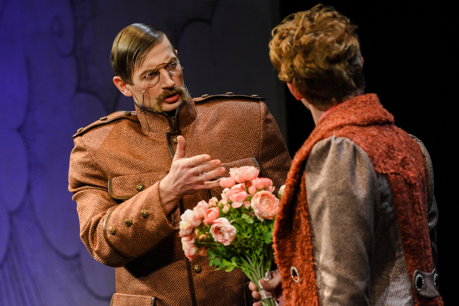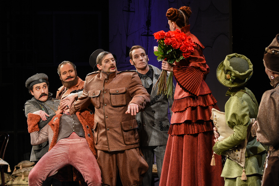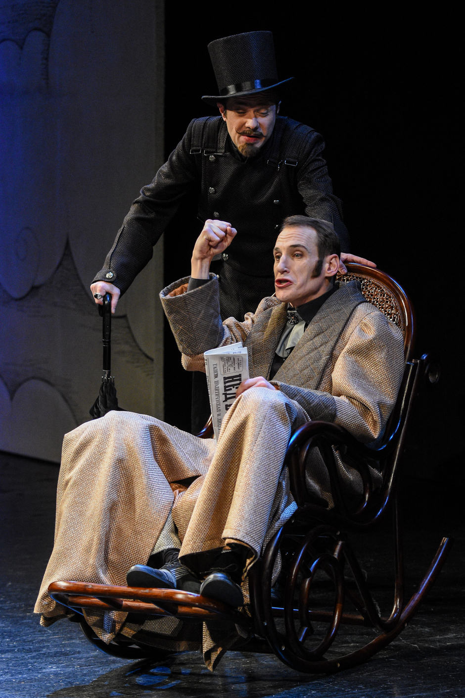 Но есть две актерские работы, которые стоит выделить особенно. Это купец Стариков (Илья Скрябин) и морской волк Жевакин (Виктор Шестаков). И если у Скрябина (очень выросшего профессионально за последние несколько сезонов) герой обладает всей полнотой мужского обаяния, некой харизмой надежности и правильности, в нем есть и мужская щедрость, и трогательная застенчивая влюбленность, то Шестаков показывает квинтэссенцию гротеска. В Жевакине так легко переиграть, сбиться на комикование, но нет! Шестаков точен, органичен, его гротеск «породист». Его Жевакин так смешон и самоуверен, что его хочется пожалеть.