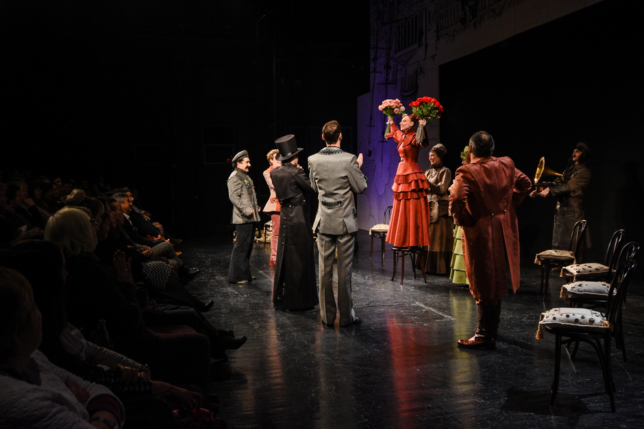 Последней премьерой уходящего года в Качаловском театре стала «Женитьба» Николая Васильевича Гоголя. Спектакль, поставленный Ильей Славутским, идет на малой сцене, и это максимальное приближение к зрителю усложнило задачу актеров.