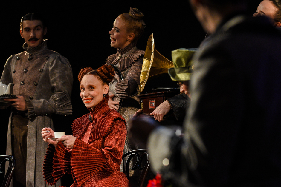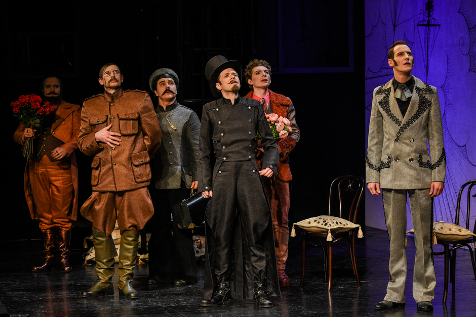 «Женитьба» в Качаловском театре — стильный спектакль, который не очень привязан к определенному историческому периоду. Он словно вне времени. Это «совершенно невероятное событие» могло произойти в любое время и в любом месте.
