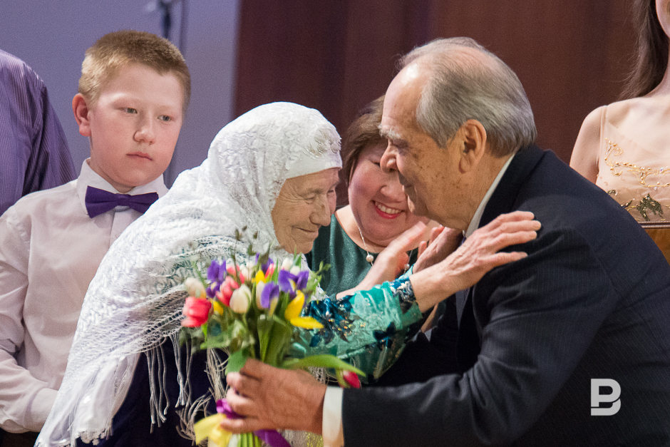 Вручить награды самым лучшим женщинам на свете вышел госсоветник Татарстана Минтимер Шаймиев. Глядя на матерей на сцене и поздравляя их с наступающим женским днем, первый президент республики не удержался и вспомнил свою маму. Судя по его рассказу, ей нелегко пришлось поднимать детей:
