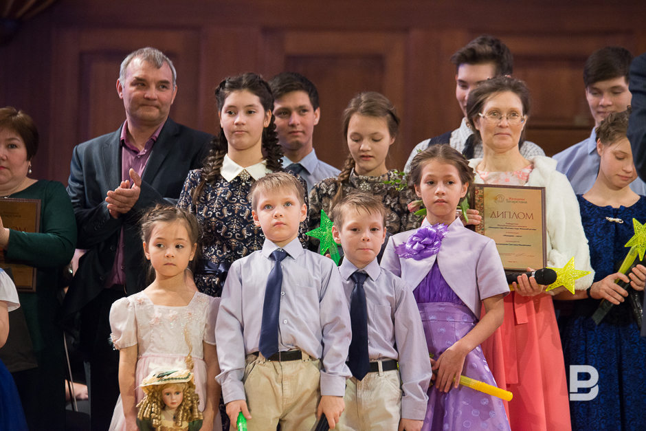 Церемонию награждения по традиции начали с самой важной номинации «Женщина-мать». Победителей представили зрителям необычно и ярко: в зале гаснет свет, в темноте зажигается звездочка и детским голосом возвещает: «Я Рамиль», появляется другая: «А я Амир», затем еще и еще: «Алина», «Рустам», «Лейсан» — и вот уже на сцене целое созвездие. По обе стороны от него — еще две звездные семьи, в каждой по десять детей и вдвое больше внуков. Пришлось нелегко, признаются победители, но этот вызов судьбы они приняли достойно.