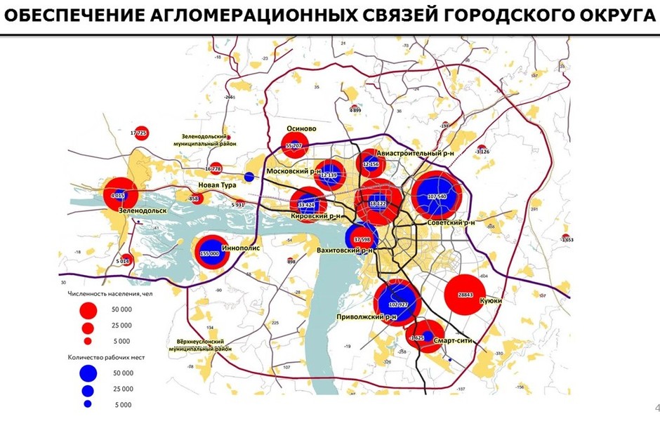 В будущем в зону влияния казанской агломерации попадут территории Зеленодольского, Лаишевского и Верхнеуслонского района. Периферия которых из-за близости к Казани, в свою очередь, активно застраивается, что вызовет нагрузку на транспортную инфраструктуру.