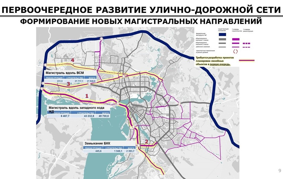 Генплан предусматривает и передел транспортной инфраструктуры. 354 километра новых дорог и 10 развязок. Ставку сделали на трамвай. Рельсы должны проложить до «Салават купере». Рассматривается три варианта — все пройдут по улице Тэцевской, вопрос в том где в нее вклиниться. Первое предложение — продолжение трамвайного маршрута №1: линия пойдет от завода «Оргсинтез». Второй вариант — от Северного вокзала, третий — Кировский район, ответвление от малого казанского кольца. Во всех трех случаях нужно будет вырубать порядка 5,2 тыс. квадратных метров леса. С точки зрения финансов самый экономичный вариант — первый. Но учитывать будут не только стоимость, но и пассажиропоток.