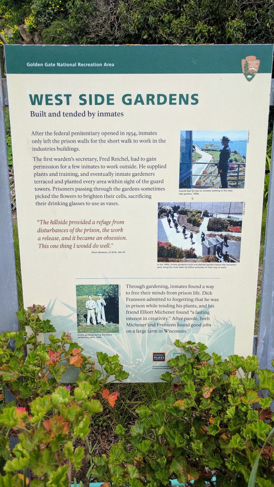 Однако, в качестве привилегии, ряду заключенных разрешалось работать за пределами тюрьмы. Такие заключенные ухаживали за растениями, готовили компостные ямы и в общем и целом проводили много времени на свежем воздухе вне здания тюрьмы. Ввиду островного расположения тюрьмы за ними не следили пристально, и они часто помогали женам офицеров, живших здесь же и тоже занимающихся садоводством у себя на участках.