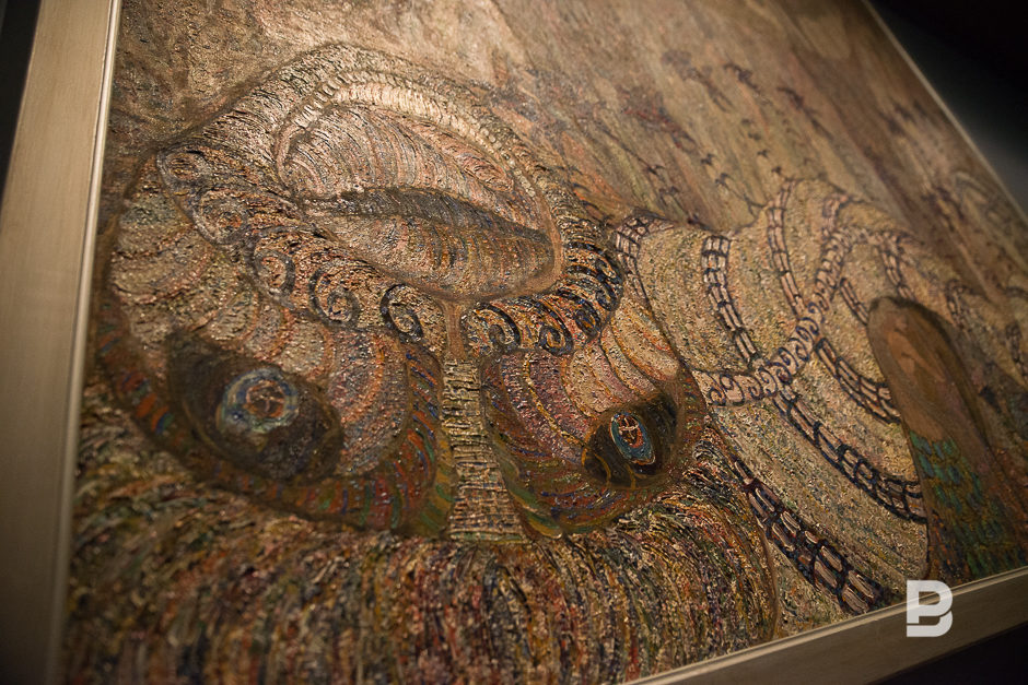 Именно врубелевским панно «Полет Фауста и Мефистофеля» открывается выставка. Работа хранится в ГМИИ РТ, она датирована 1896 годом и считается предтечей русского символизма в живописи. Работа Врубеля — загадочная «Царевна-Лебедь» — стала главной картиной и эмблемой выставки.