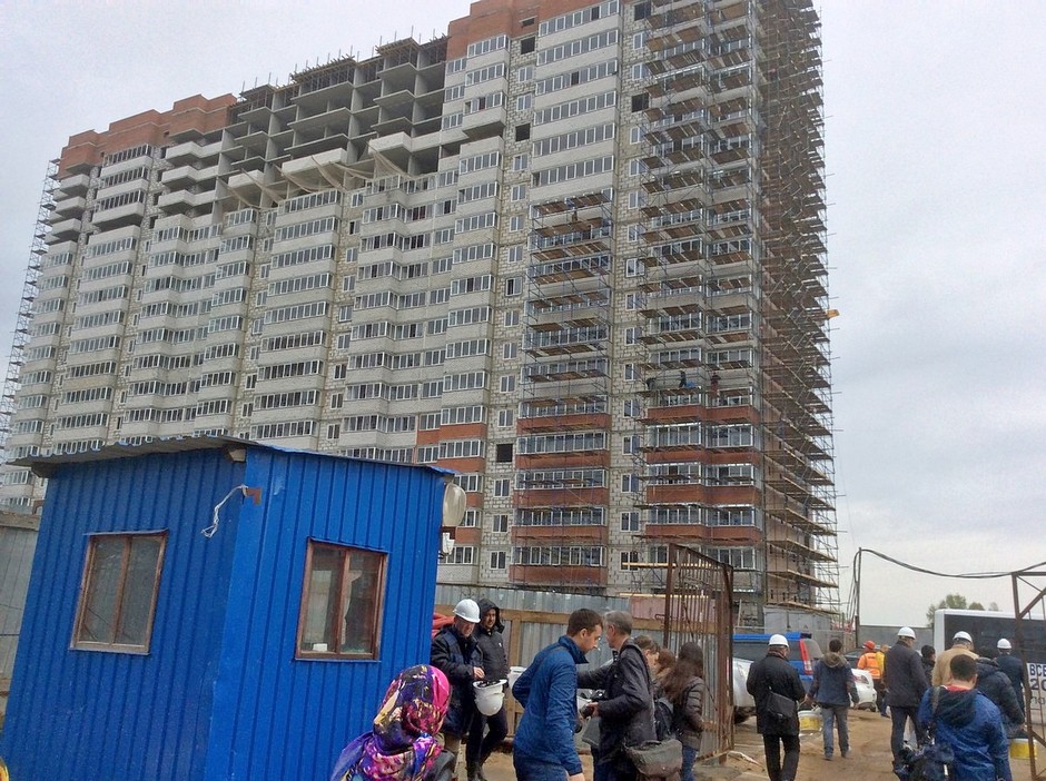 В этот момент на стройку прорвались соципотечники. Узнав о приезде комиссии, люди с семи утра ждали ее представителей по всем точкам объезда. Отчаявшиеся очередники пожаловались на отставание подрядчиков и пытались донести до кураторов объекта, что на стройке в 11-м квартале нет заявленного числа людей — 850 человек.