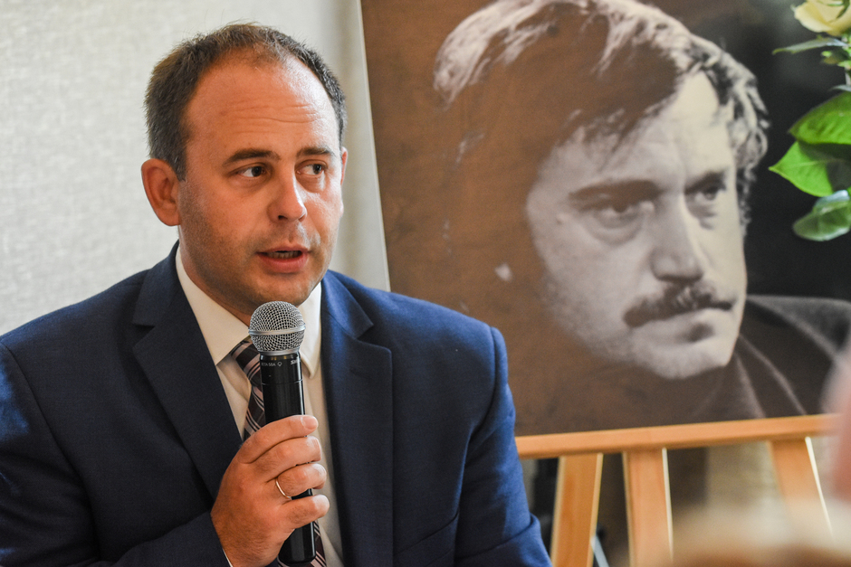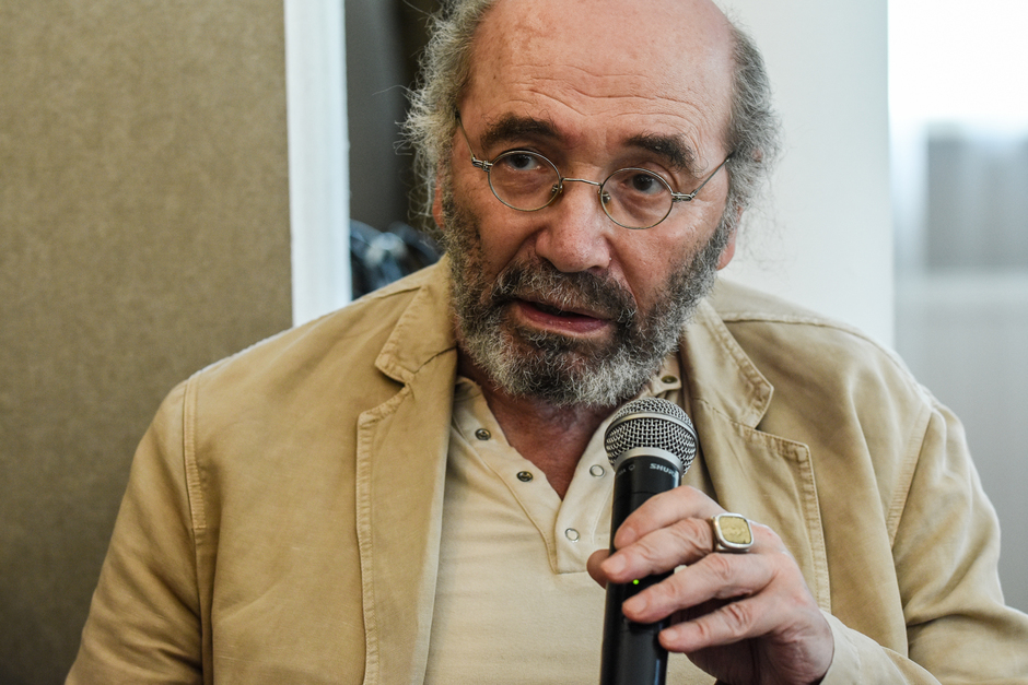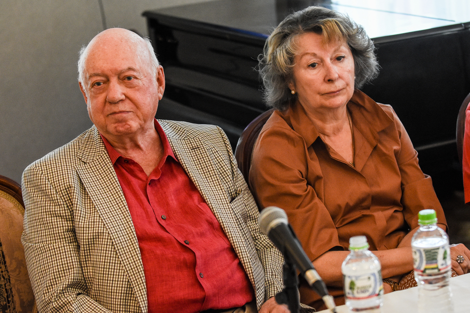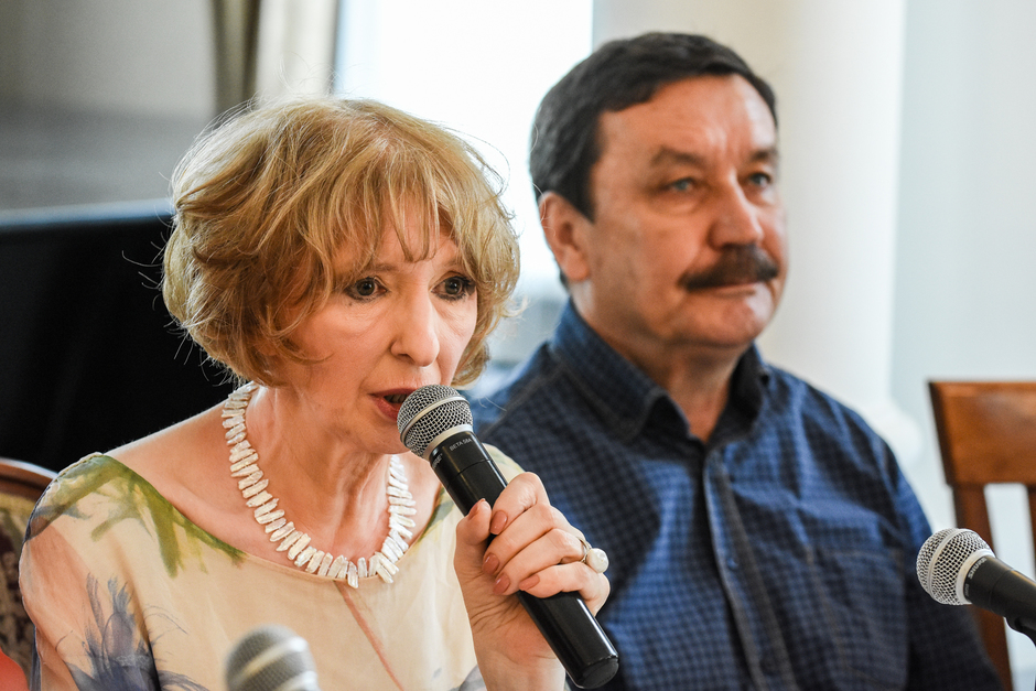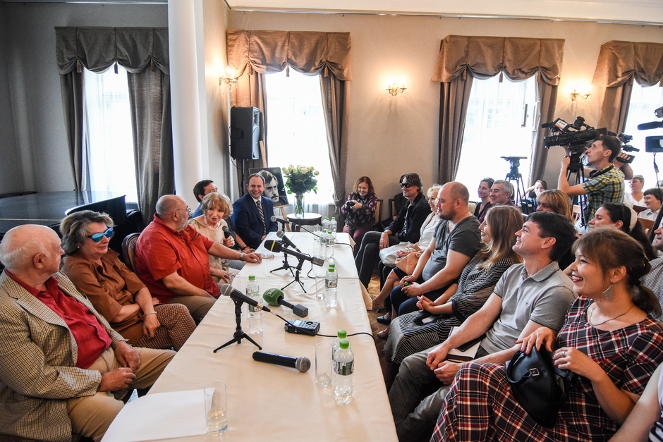Первым на пресс-конференцию пришел Борис Мессерер, за ним Александр Кабаков, постепенно подтягивались и остальные гости. Делегация писателей и литературных критиков из Москвы приехала внушительная — около двадцати пяти человек. В зале музея Аксенов все было традиционно — большой портрет Василия Павловича и возле него ваза с огромным букетом белых роз.