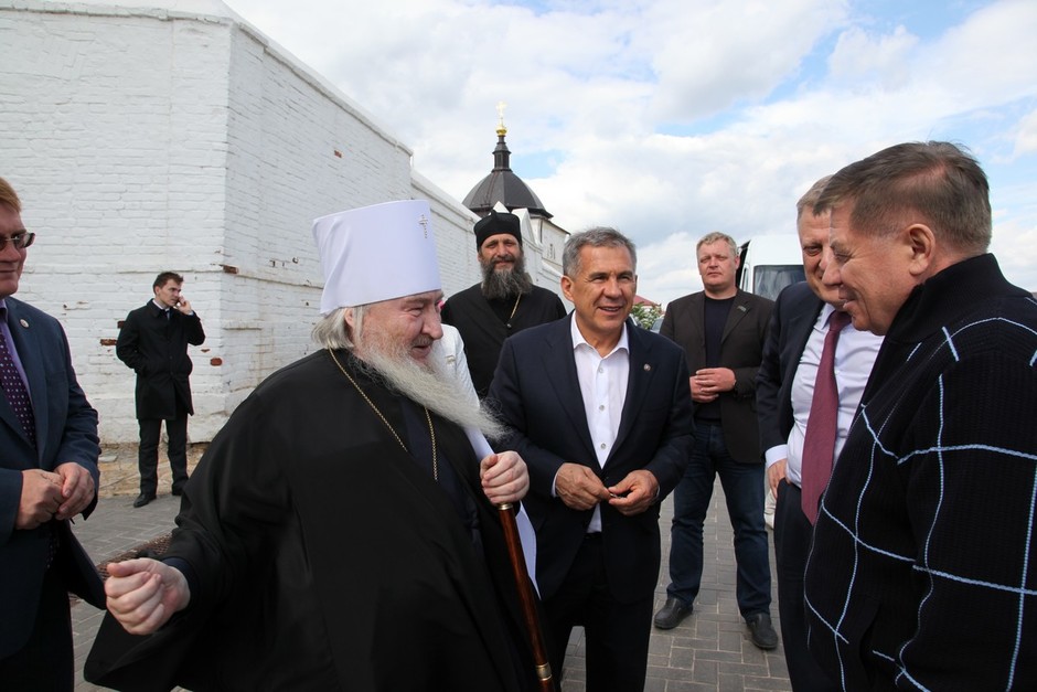 Сегодня председатель Верховного Суда РФ Вячеслав Лебедев, находящийся в Казани, вместе с президентом РТ Рустамом Миннихановым побывал в Свияжске. На территории исторического комплекса к гостям присоединился митрополит Казанский и Татарстанский Феофан.