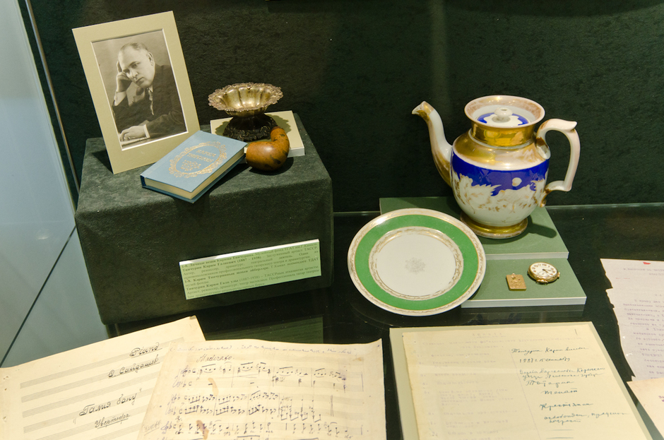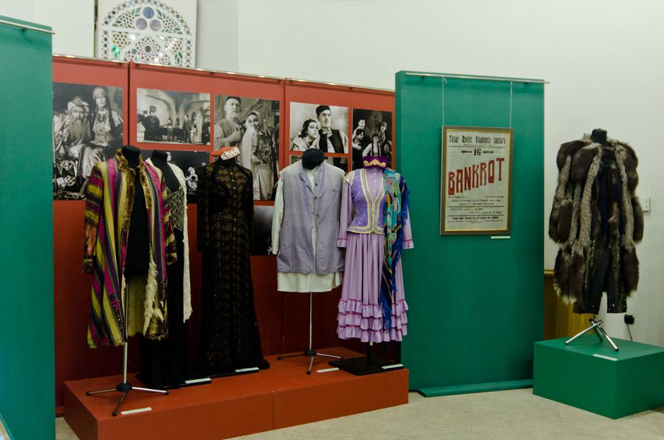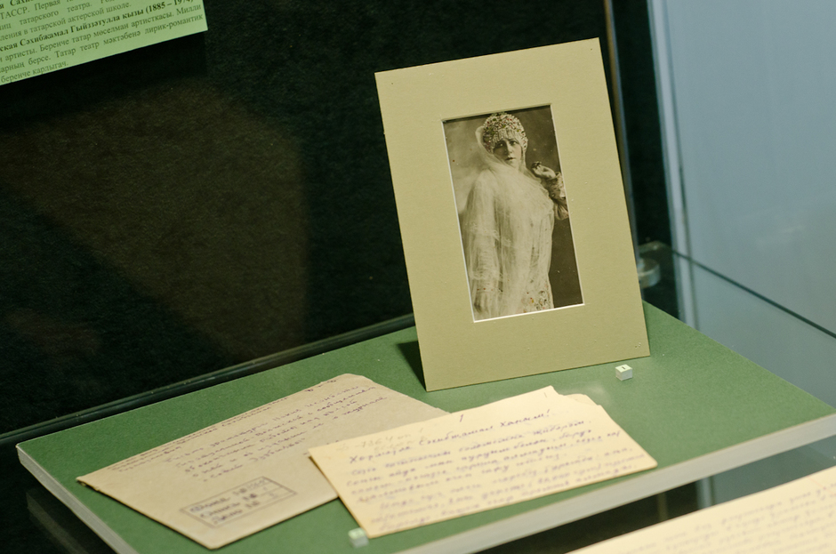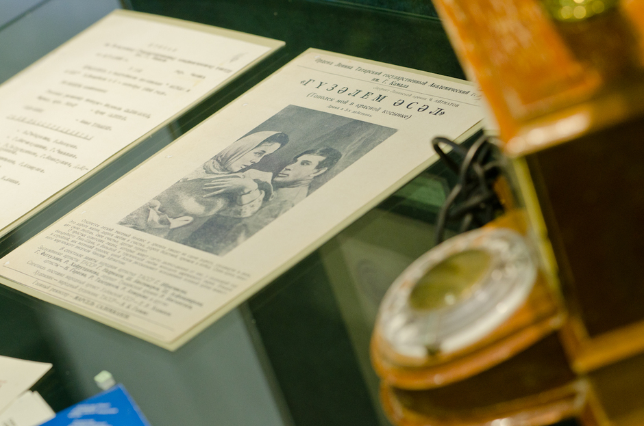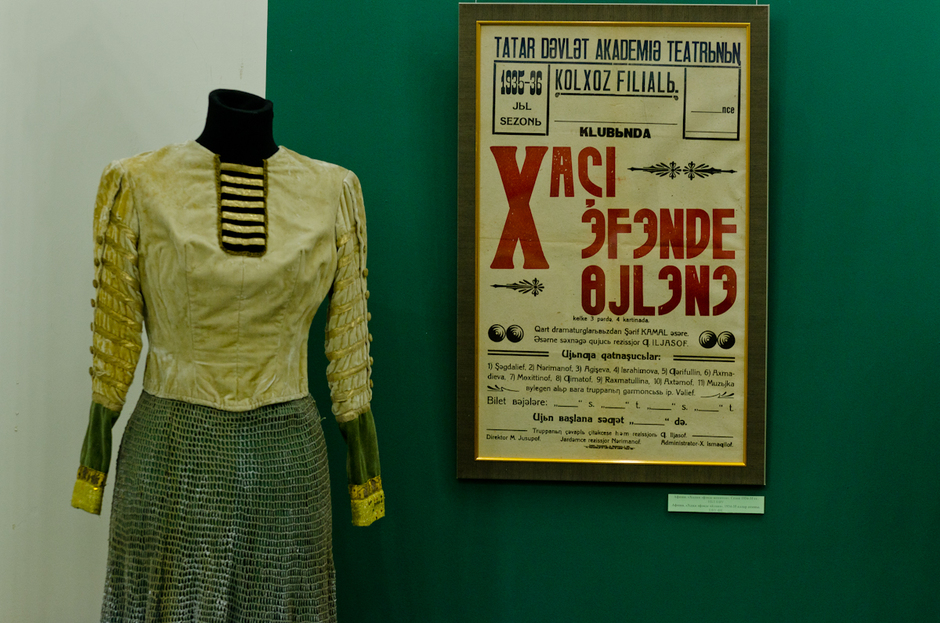 Сегодня в Музее истории государственности Татарстана открылась выставка «Татарский культурный код: 110 лет первому татарскому театру». В экспозиции - уникальные архивные документы, афиши спектаклей, буклеты и программки, костюмы, в свое время задействованные в знаковых для театра постановках, фотографии, газеты, журналы и даже личные вещи знаменитых актеров: Сахибжамал Гиззатуллиной-Волжской, Фатимы Ильской, Карима Тинчурина, Халиля Абжалилова и многих других.