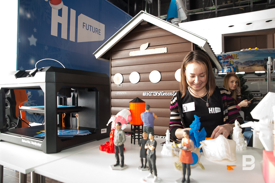 Сегодня в одном из торговых центров Казани открылась выставка Hi, Future. Как анонсировали организаторы, в экспозиции должно было быть представлено более 10 интерактивных зон и около 40 передовых экспонатов: виртуальная и дополненная реальность, зона 3D-Print, тест-драйвы, электромобиль, система «Умный дом», зона роботов, бег по воде (неньютоновская жидкость), фотозона с Дедом Морозом и даже точная 3D-копия Рустама Минниханова.