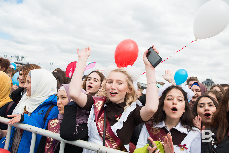 Сегодня для казанских 11-классников прозвенел последний звонок. Во время праздника на Кремлевской набережной поздравили выпускников, победителей различных олимпиад, и первоклашек, которые показали лучшие результаты в выполнении заданий дневника добрых дел.