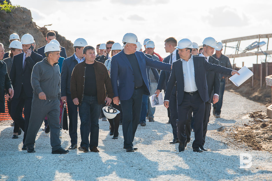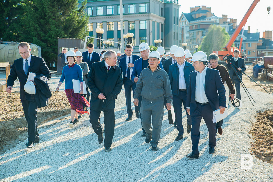 Сегодня президент РТ Рустам Минниханов и мэр Казани Ильсур Метшин осмотрели площадку строительства подземного паркинга перед НКЦ «Казань». Заказчиком объекта является ОАО «ТАИФ», проектировщиком — ГУП «Татинвестгражданпроект». Окончание работ, которые начались в сентябре 2016 года, запланировано на июнь 2018-го. Новый паркинг, занимающий территорию около 9 тыс. кв.м, будет вмещать более 900 машин. Ранее на этом месте находилась наземная парковка на 228 мест.