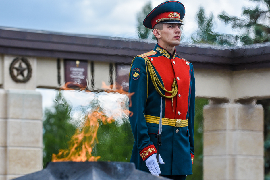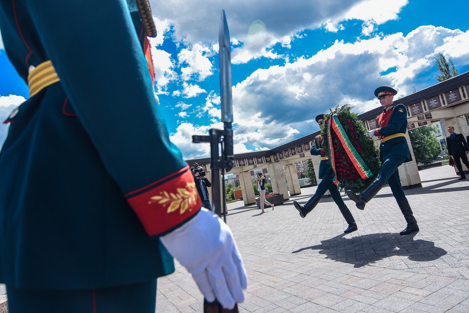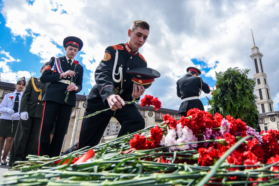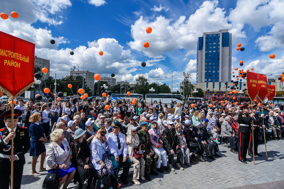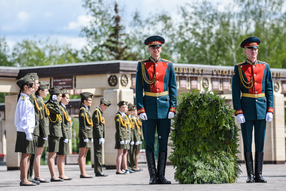 Почтили павших в бою минутою молчания. После чего в небо взмыли воздушные шары. Завершился День памяти и скорби возложением цветов под звуки военного оркестра.