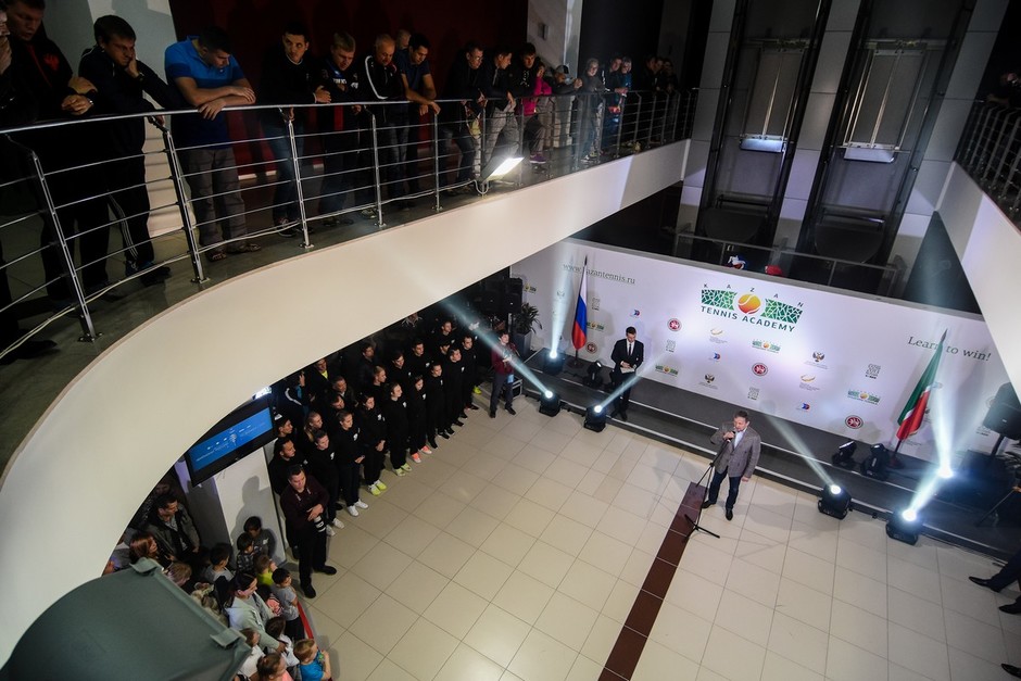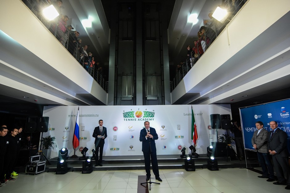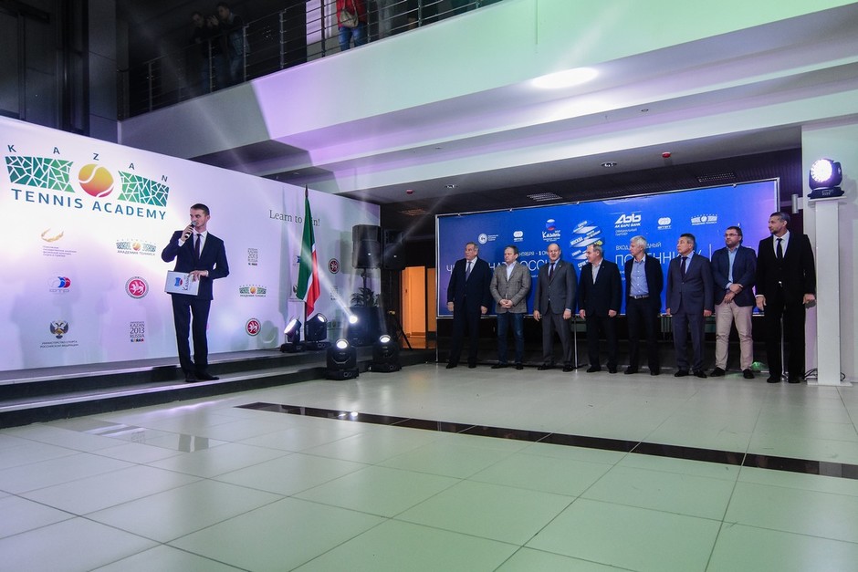 Сегодня ярким световым шоу открылся основной турнир чемпионата России по теннису 2017 года. В церемонии приняли участие президент Федерации тенниса России Шамиль Тарпищев, депутат государственной думы РФ Марат Бариев, президент Федерации тенниса РТ Марат Зарипов и другие гости.