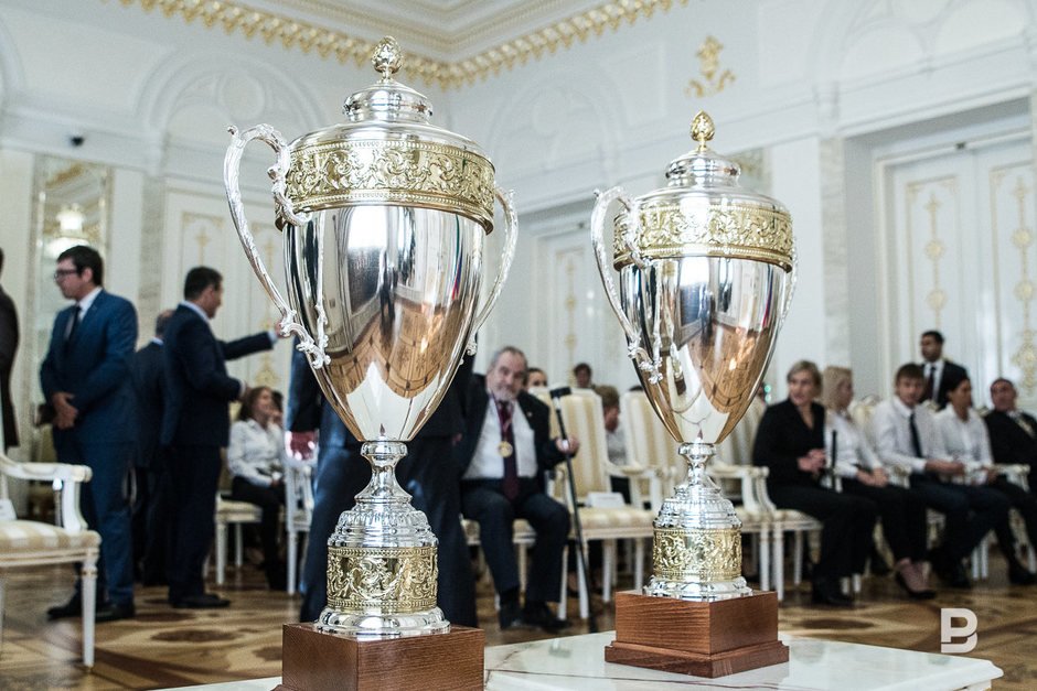 Сегодня в Казанском кремле прошло торжественное чествование мужской команды «Динамо-Казань» и женского клуба «Динамо-Гипронииавиапром» («Динамо-ГАП»)- чемпионов России по хоккею на траве. Глава республики Рустам Минниханов вручил представителям команд государственные награды Татарстана, ряд спортсменов был удостоен благодарности президента РТ. На память Рустаму Минниханову вручили победную клюшку для хоккея на траве и чемпионские медали.